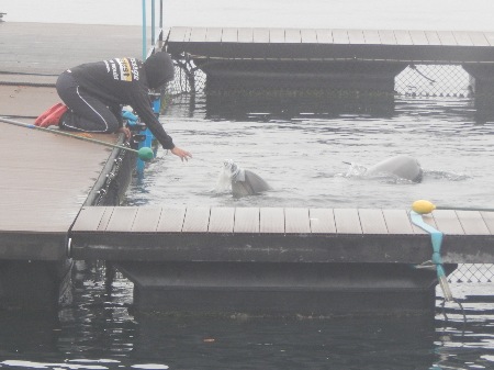 Hungernde Delfine zeigen Einfallsreichtum, um an Futter zu gelangen. Eine Delfin-Abrichterin schaute an diesem Morgen an den Gehegen der Dolphin-Base vorbei, in dem etwa 30 Delfine eingesperrt waren, um zu überprüfen, ob alles in Ordnung war. Die Abrichterin hatte keinen Fisch dabei und die Tiere hatten Hunger. Die Delfine sprangen und hielten Ausschau, ob die Frau nicht doch was zum Fressen dabei hatte. Ein Delfin ließ sich etwas Besonderes einfallen. Ein zweiter Delfin beobachtete das Geschehen ganz genau. Schließlich werden die Tiere hier gezwungen, Gegenstände auf Kommando zu bringen, wofür sie dann auch Futterbelohnungen erhalten. Der zweite Delfin macht sich auf die Suche nach irgendetwas, um der Abrichterin auch zu gefallen. Die Tiere würden alles tun, auch wenn es gegen ihre Natur ist, um an Futter zu gelangen! Die Abrichterin forderte den Delfin auf, an den Beckenrand zu kommen, damit sie die Plastiktüte aus dem Maul des Delfins entfernen konnte. Der Delfin könnte sterben, wenn er die Tüte verschlucken würde. Der zweite Delfin merkte, dass diese Strategie des ersten Delfins zum Erfolg führen könnte und suchte weiterhin nach irgendeinem Gegenstand. Der zweite Delfin hatte etwas gefunden und zeigte es voller Hoffnung nach etwas Futter der Abrichterin. Der Delfin ließ es fallen, weil er wohl dachte, es gefiel der Frau nicht und suchte nach etwas anderem, was er aber nicht fand. Als der Delfin merkte, dass die Frau ihm nichts zum Fressen gibt, übergab er ihr aus Trotz auch nicht die Plastiktüte. Das ging noch eine ganze Weile so weiter. Schließlich gab die Frau entnervt auf und ging. Der Delfin hatte diese Runde gewonnen, auch wenn er weiterhin hungern musste. Wir sind sicher, dass sich die Delfin-Abrichter später an dem Tier für seinen Ungehorsam revanchiert haben, denn nur von ihrem Willen gebrochene Tiere sind für die Delfinarien-Industrie interessant. Tiere mit ihren natürlichen Verhaltensweisen sind es nicht! Niemand war mehr dort, der versuchte dem Delfin die Plastiktüte wegzunehmen. Die gefangenen Delfine in Taiji – Sie hungern und schreien! Brutale Methoden brechen ihren Willen! Deshalb gilt aus Tierschutzgründen: