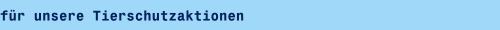 Tierschutzaktionen kosten viel Geld und sind für uns nur durch Spenden finanzierbar. Aktuelle Spendenaufrufe über unsere laufenden und bevorstehenden Tierschutzaktionen erhalten Sie im: Spenden-Barometer Werden Sie Förder-Mitglied und unterstützen Sie unsere Tierschutzaktionen regelmäßig - FÖRDER-MITGLIEDSCHAFT oder richten Sie sich selbst eine Dauerauftrag ein - DAUERAUFTRAG Informationen über einmalige Spenden erhalten Sie hier - SPENDEN