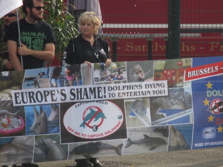 Menschen protestierten heute für die Schließung des Delfinariums in